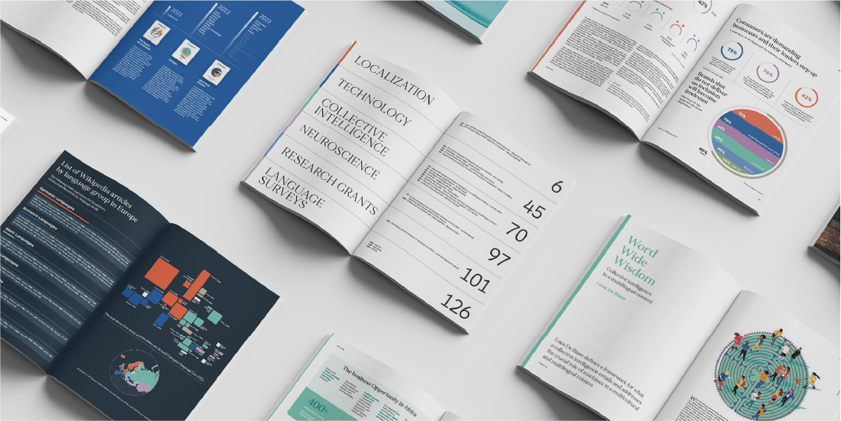 'Word Wide Wisdom' takes readers through the technological, linguistic, and economic dynamics at play in a multilingual context. The report consists of research papers, insightful data on rapidly developing countries, and thought-provoking interviews with Imminent’s distinguished scientific committee members. This includes notable contributions from experts such as Airbnb’s Head of Localization, and Nimzdi Insights’s co-founder, Renato Beninatto, as well as invaluable insights from ESA astrophysicist Ersilia Vaudo, and former President of the European Research Council, Helga Nowotny, who explore how socio-technical groups evolve in multilingual contexts and what tools can help to successfully collaborate together, understanding each other.