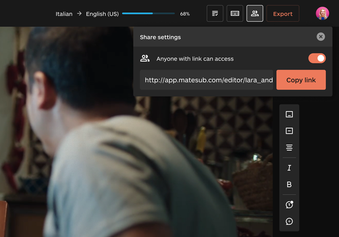Translated is excited to announce the release of Matesub, an innovative web-based and AI-powered subtitling tool developed to help subtitlers and companies craft higher quality subtitles in less time. With Matesub, state-of-the-art AI takes care of the most time-consuming tasks involved in the subtitling process, such as positioning text and checking compliance with the provided guidelines, allowing linguists to focus on the creative part of the job. The system auto-detects shot changes and allows users to edit subtitles and position them with frame-level precision. These features are combined with a powerful WYSIWYG editor that shows subtitles exactly as they will be displayed in the final video.