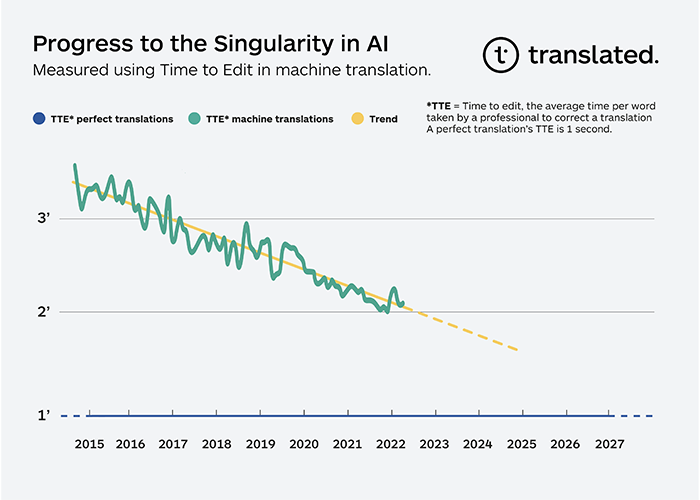 Our data clearly shows that within a decade the best-performing translators will spend the same amount of time correcting a translation done by MT as one done by their peers that doesn’t require any editing.